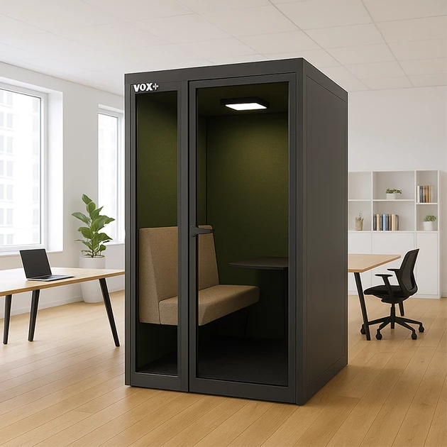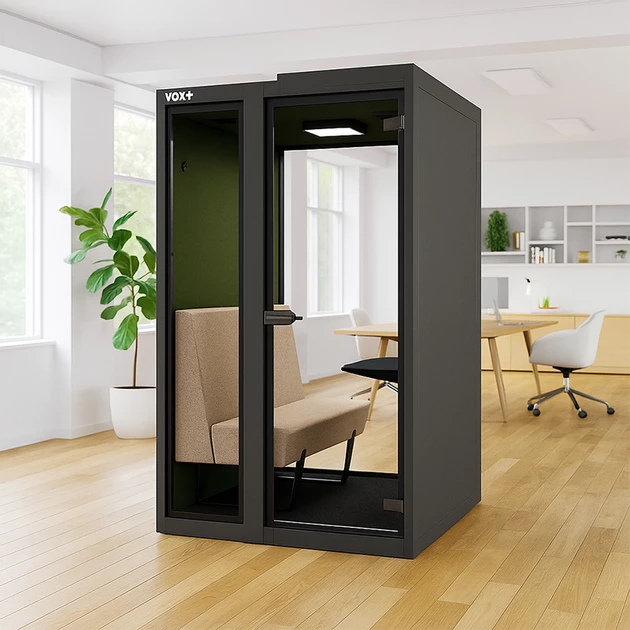 Heeft u even behoefte aan een moment van rust, of wilt u in volledige stilte kunnen telefoneren zonder gestoord te worden door collega's? Dan biedt de akoestische belcel Vox Teams de perfecte oplossing. Deze compacte ruimte is ideaal voor zowel teams-meetings als afgesloten telefoongesprekken.