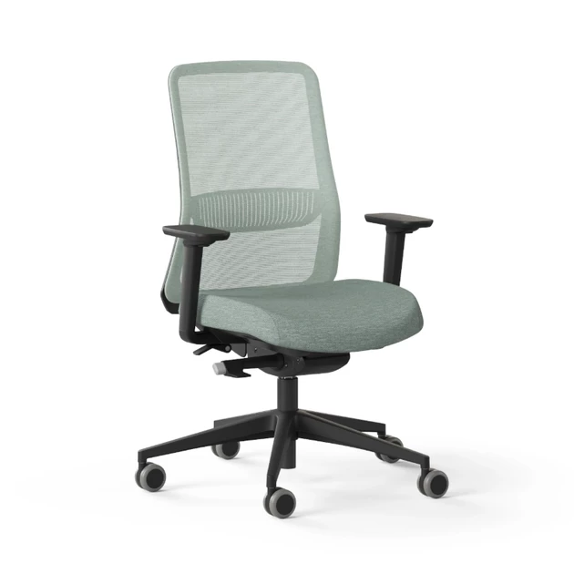 De combinatie van de verstelbare armleggers, de lendensteun en het synchroonmechaniek maakt deze stoel geschikt voor langdurig gebruik op kantoor. Het stevige zwarte voetkruis en de 65 mm wielen zorgen daarnaast voor stabiliteit en soepele verplaatsing.