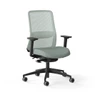 Deze task chair is uitgevoerd met 3D verstelbare zwarte kunststof armleggers en een zwart frame voor de rugleuning. De stoel heeft een moderne, rustige uitstraling dankzij de slanke belijning, het zwarte onderstel en de strak vormgegeven rug. De hoogteverstelbare lendensteun in de rug zorgt voor extra ondersteuning tijdens het zitten.