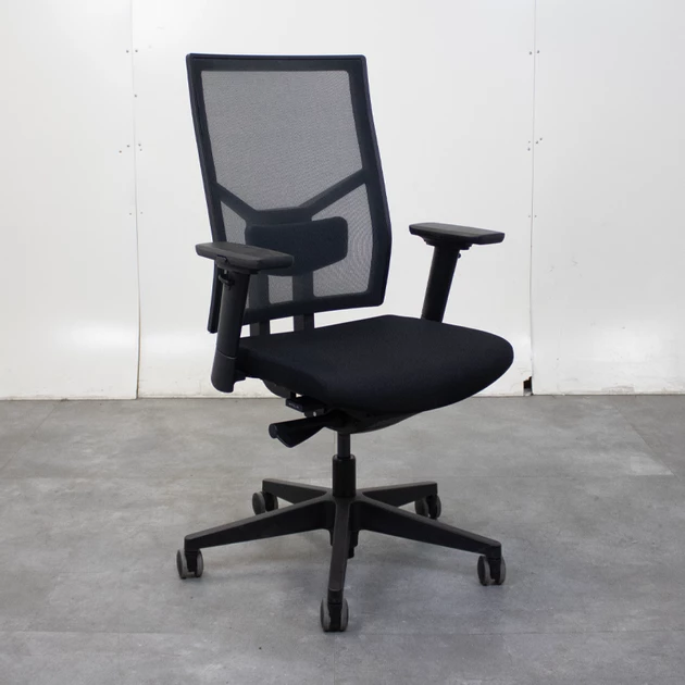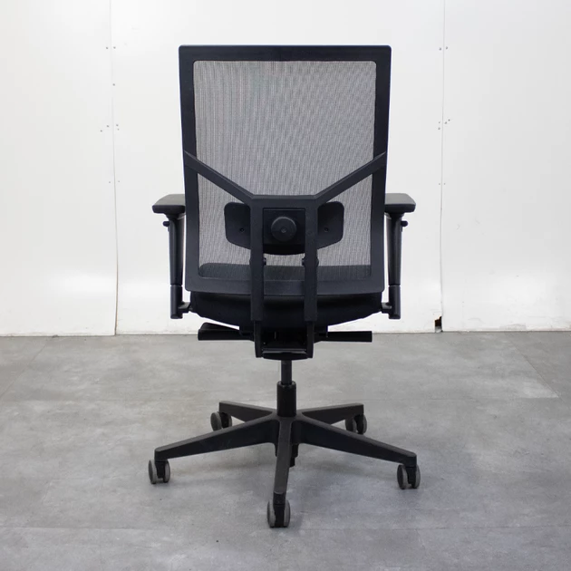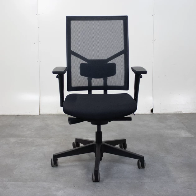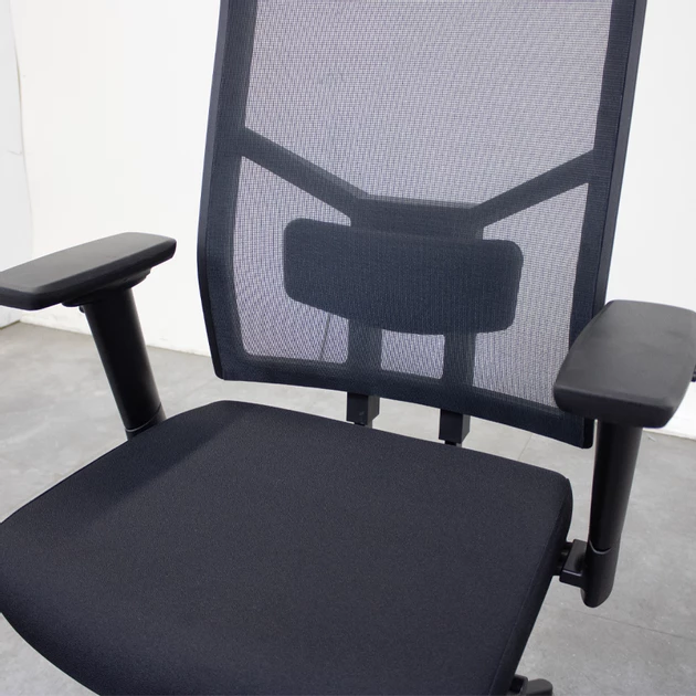 De netbespannen zwarte rugleuning zorgt voor optimale ventilatie en is in hoogte verstelbaar. In combinatie met de geïntegreerde lendesteun biedt dit goede ondersteuning van de onderrug. De gestoffeerde comfort zitting is voorzien van een 6 cm schuifzitting, zodat de zitdiepte eenvoudig kan worden aangepast aan de gebruiker.