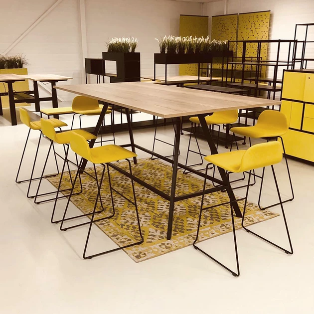 De hoge vergader- en/of bartafel Bridge XLis leverbaar in diverse kleurstellingen en afmetingen.