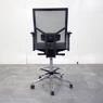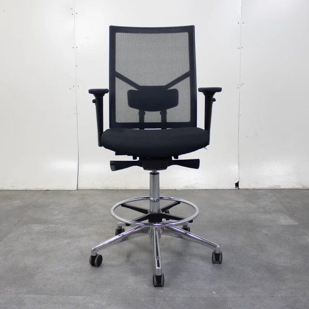 Deze hoge werkstoel is speciaal ontwikkeld voor werkplekken waar een verhoogde zithouding gewenst is, zoals aan hoge bureaus, balies of industriële werktafels. De combinatie van een netbespannen rugleuning en een comfortabele zitting zorgt voor optimale ondersteuning tijdens intensief dagelijks gebruik.