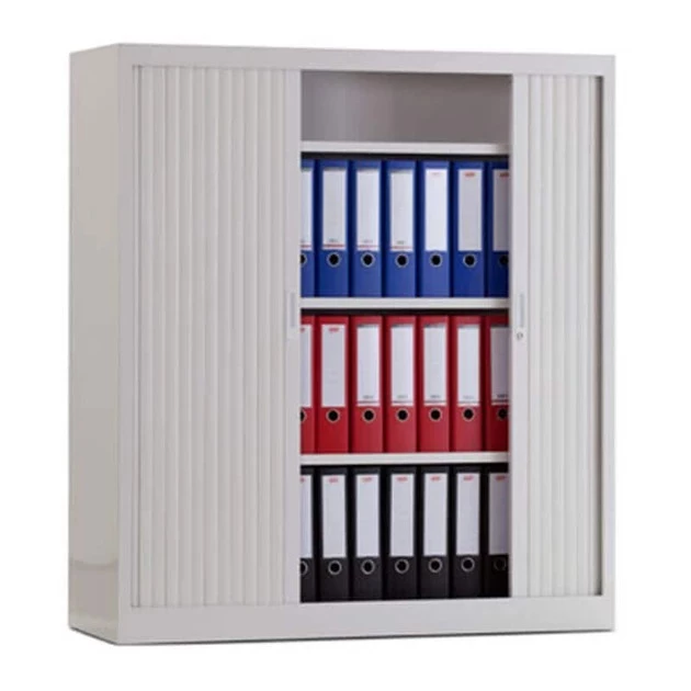Deze witte roldeurkast van 120 cm breed en 135 cm hoog heeft een frisse, moderne uitstraling en past moeiteloos in iedere kantoor- of werkomgeving. De kast biedt volop ruimte voor dossiers en documenten, die u veilig kunt opbergen dankzij het geïntegreerde slot. Een praktische en nette oplossing voor een georganiseerde werkplek.