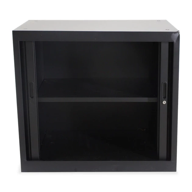 Zoekt u een praktische kast die weinig ruimte in beslag neemt - maar wél veel ruimte biedt voor uw kantoorartikelen, papierwerk of andere zaken? De tweedehands lage roldeurkast van 80cm breed is ideaal. Met één legbord en een vlakke bodemplaat biedt deze kast immers ruimte aan 2 rijen ordners.Productspecificaties