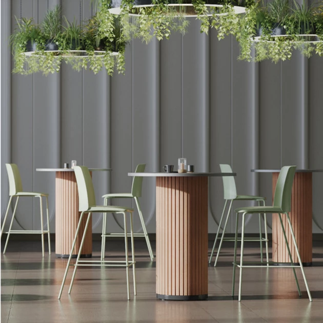 Deze ronde vergadertafel Parthos bevordert betere communicatie, omdat iedereen aan tafel elkaar kan zien. Het ontwerp is stijlvol en elegant, met een opvallend cilindrisch onderstel. De cilindrische kolom is bedekt met PET felt met een textuur van verticale lijnen, wat een subtiele verwijzing naar klassieke architectuur geeft.