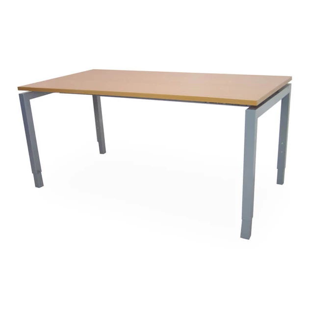 Gebruikt bureau met beuken blad- Melamine blad - Metalen 4-poots onderstel - In hoogte verstelbaar Kleuren - Kleur blad: beuken - Kleur onderstel: grijs Afmetingen - Breedte: 160cm - Diepte: 80cm - Min. hoogte: 65cm - Max. hoogte: 84cmProductspecificaties