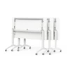 Met deze complete klaptafel bespaar je niet alleen ruimte, maar ook tijd. Dankzij het slimme kantelmechanisme klap je het blad in één beweging omhoog, waarna je de tafel moeiteloos wegrijdt dankzij de zwenkwielen. Ideaal voor ruimtes die regelmatig opnieuw worden ingericht, zoals vergaderruimtes, opleidingszalen of multifunctionele kantoren.