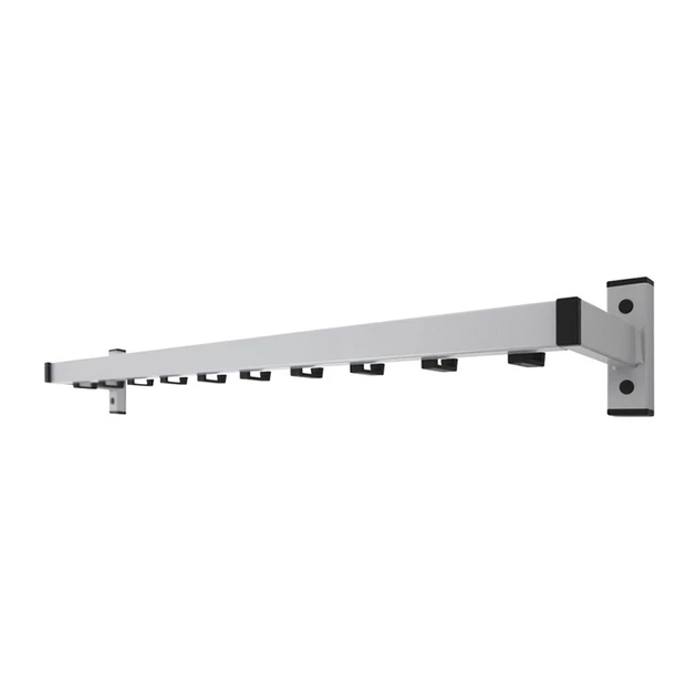 Wandgarderobe Safe met 10 haken Wandkapstok met 10 haken. De haken zijn aan de binnenkant van de horizontale balk gemonteerd.